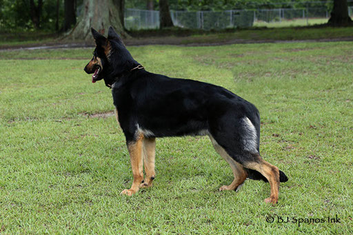Her pedigree allows us to breed dogs for national and world level dog sports, as well as for dual purpose police or SAR while have no doubt in placing pups into family homes without GSD experience.