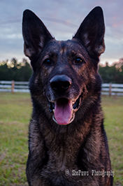 Dark Sable male, big head, lots of drives. Sound dog in family but yet very capable of determining friend from enemy. He is great with kids, cats, live stock etc. A strong male, not necessarily for first time handlers, but the best family protector imaginable. Brings strong prey drives and food Drive. Sound Character and great type. He produces Dark Sable in Color. He throws his type. Goofy, fun boy to be around. Amazing swimmer! Easy breeder!